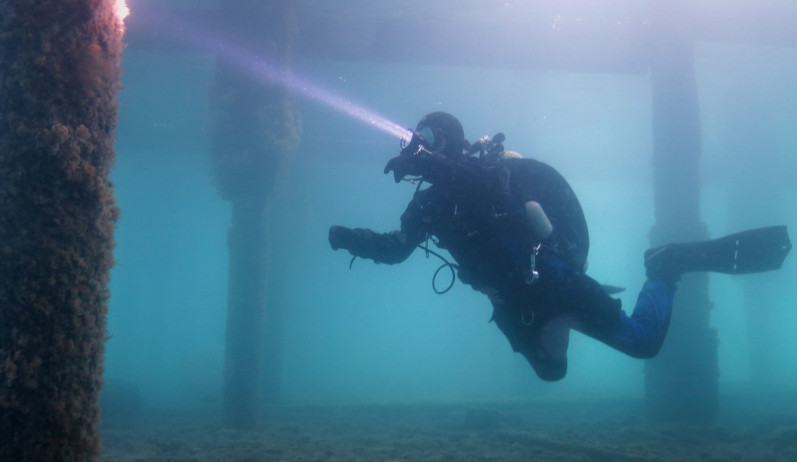 We will descend to a nice safe depth of approximately three meters. Once you are comfortable with your buoyancy we will navigate through the rows of pillars, taking our time to take in all the marine life with regular air reserve checks, and communication. We will go to the end of the pier and return. We assend in the shallower waters and fin back to the steps.